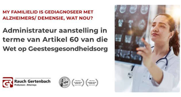 My familielid is gediagnoseer met Alzheimers/Demensie, wat nou? Administrateur aanstelling in terme van Artikel 60 van die Wet op Geestesgesondheidsorg