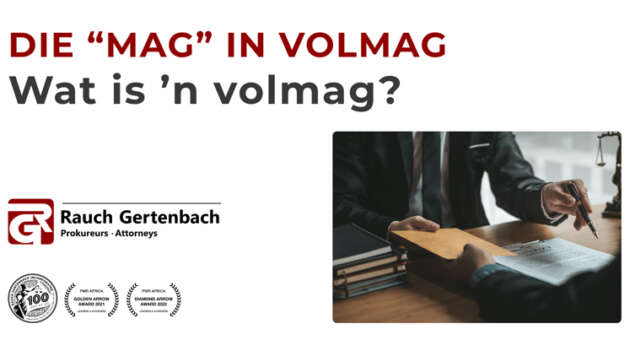 DIE “MAG” IN VOLMAG WAT IS ‘N VOLMAG? ’n Volmag is ’n skriftelike dokument wat magtiging verskaf aan ’n aangewese persoon(e) (die agent) om vir en namens iemand anders (die prinsipaal) op te tree. Die agent kan wye of beperkte magtiging kry om namens sy/haar prinsipaal op te tree rakende die prinsipaal se eiendom, finansies, […]