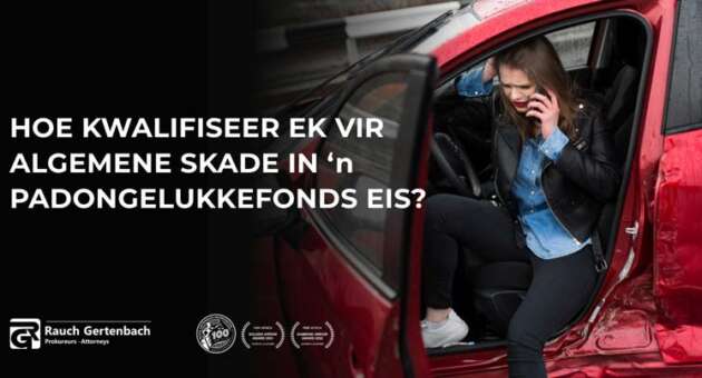HOE KWALIFISEER EK VIR ALGEMENE SKADE IN ‘n PADONGELUKKEFONDS EIS? Persone wat in ‘n motorongeluk beseer word, en wat nie skuld dra in die veroorsaking van die ongeluk nie, sal ‘n eis teen die Padongelukkefonds kan instel. Eise vir algemene skade, gelede mediese uitgawes, gelede verlies aan inkomste en toekomstige verlies aan inkomste kan ingestel […]