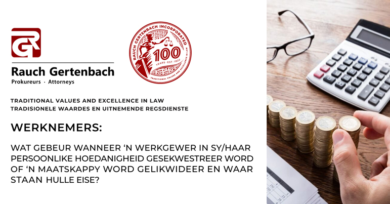 WERKNEMERS: WAT GEBEUR WANNEER ‘N WERKGEWER IN SY/HAAR PERSOONLIKE HOEDANIGHEID GESEKWESTREER WORD OF ‘N MAATSKAPPY WORD GELIKWIDEER EN WAAR STAAN HULLE EISE?